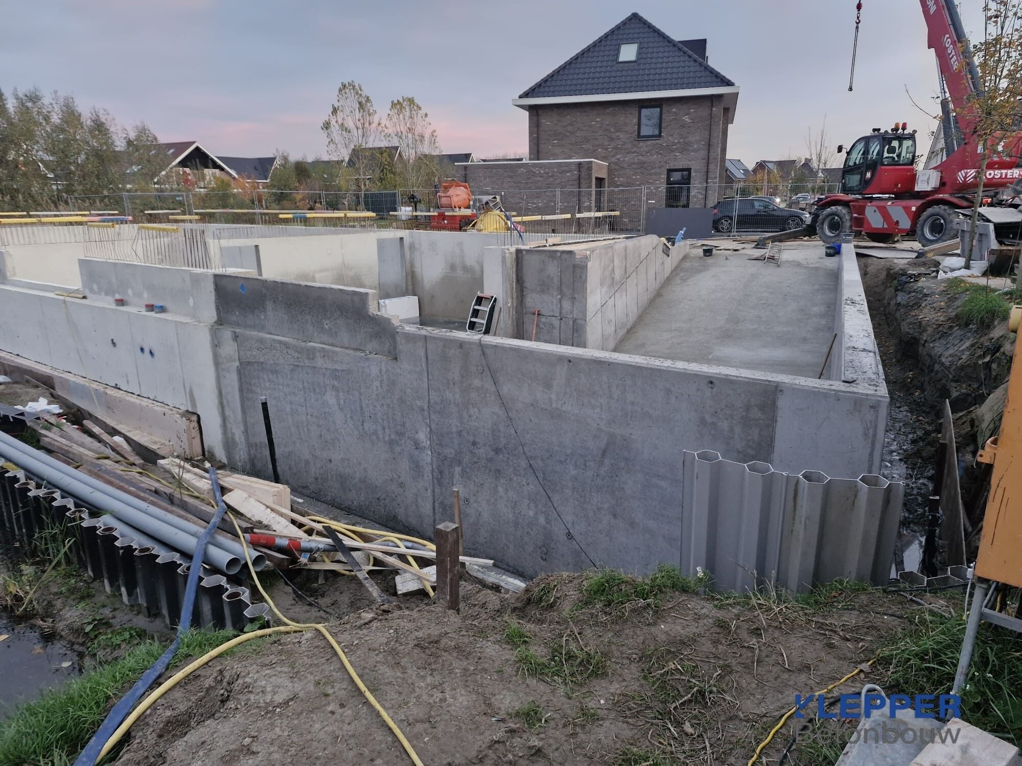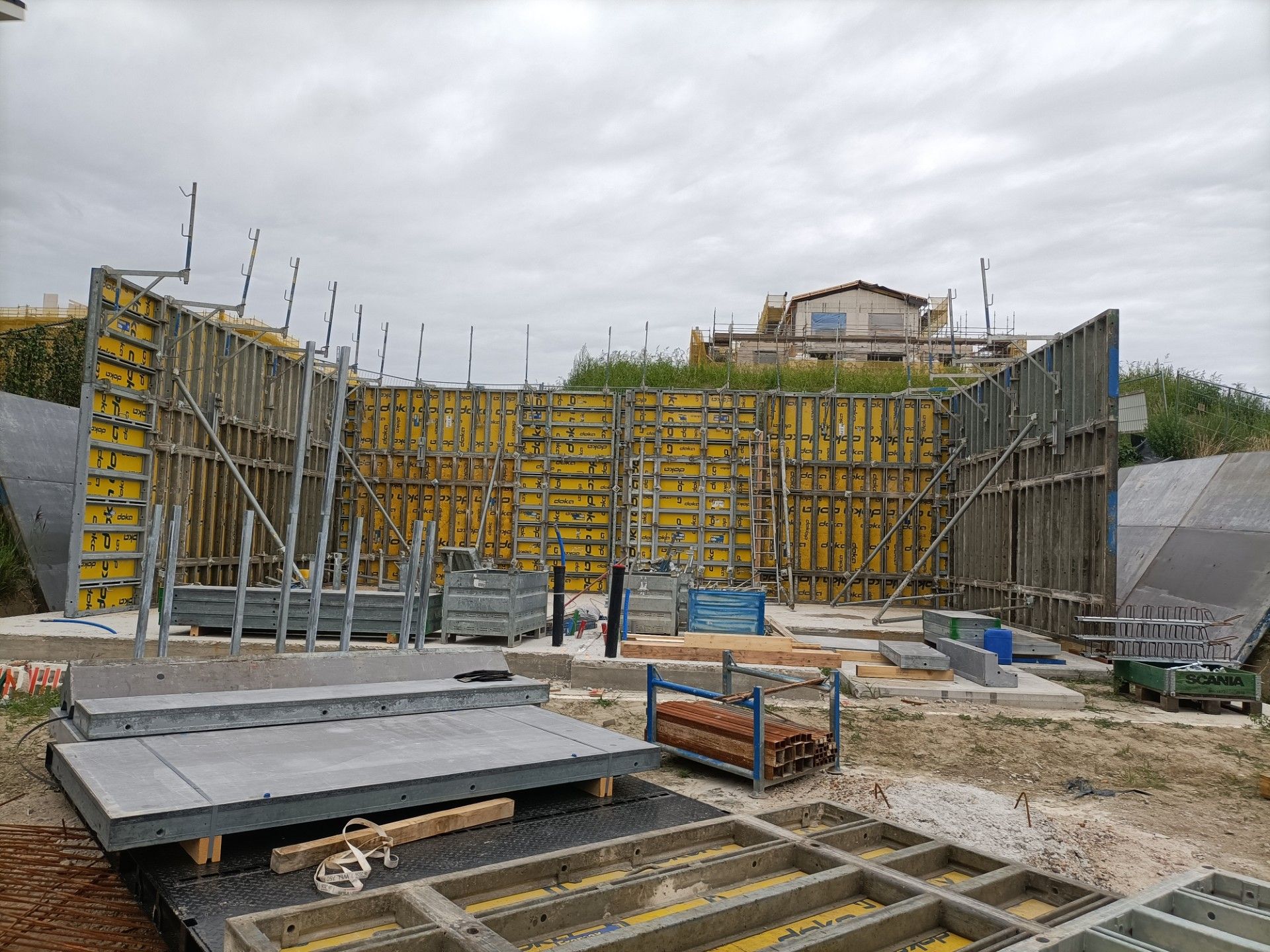 We maken de volledige kelderconstructie: bekisting, wapening en beton. De vloer storten we in het werk. Buitenwanden maken we ook in het werk, binnenwanden kunnen prefab of ter plekke worden gestort, dit is afhankelijk van de bouwmethode en beschikbare ruimte. Als het weer tegenzit, schuiven we mee zonder dat je vastloopt in de planning.